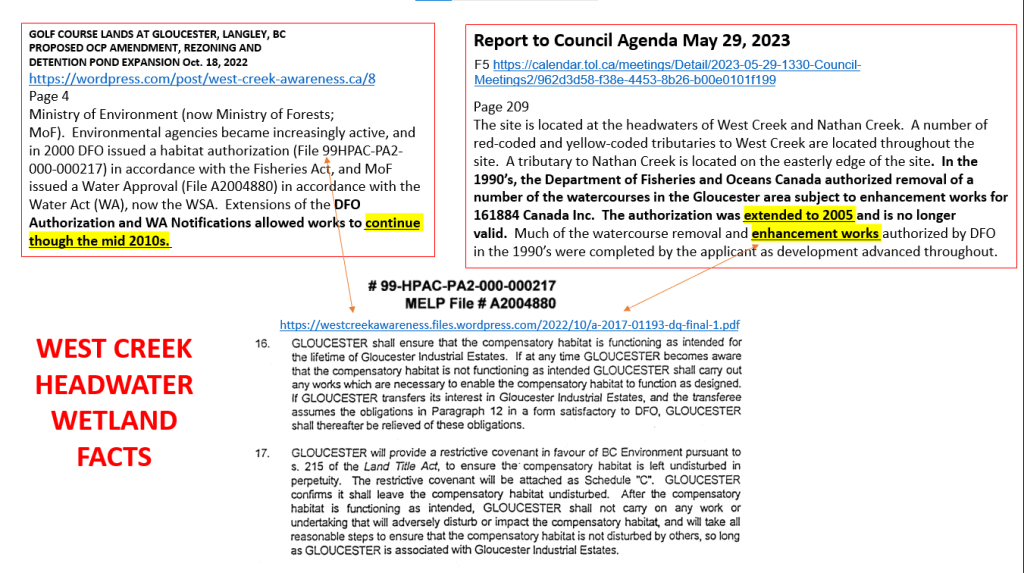 There are two proposals before Langley Township Council which are in the headwaters of West Creek.