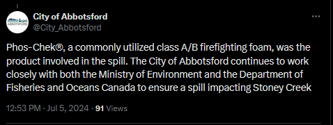 Vancouver Sun article https://www.msn.com/en-ca/news/canada/it-s-killed-everything-city-staff-addresses-firefighting-foam-spill-in-abbotsford-creek/ar-BB1prhxD