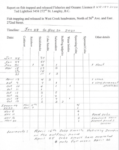 IAN WHYTE P Ag has been fully aware of the presence of coho in the West Creek headwaters since 1999